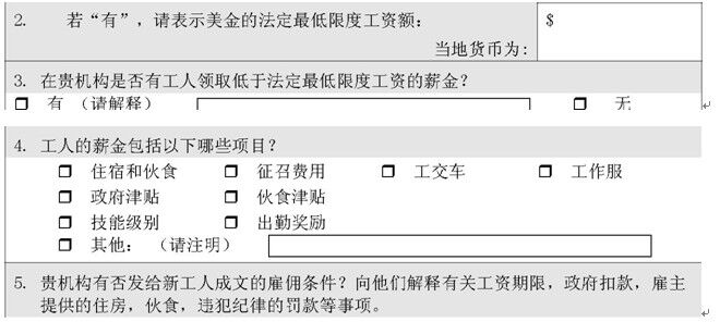 1. 貴機(jī)構(gòu)所在的國家或地區(qū),是否有法定最低限度工資 □ 有□ 無 (跳至問題5)