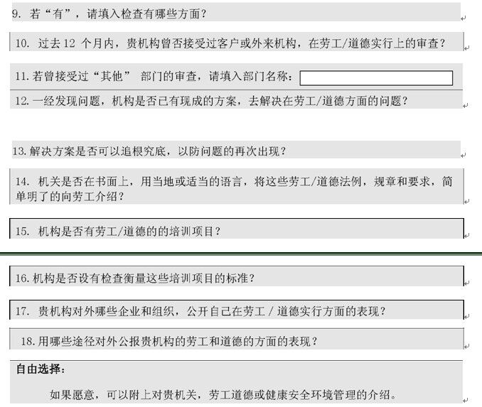 1. 貴機(jī)構(gòu)有否使用或正在設(shè)立任何管理制度,以保證勞工和道德條例規(guī)定的順利實行?